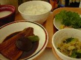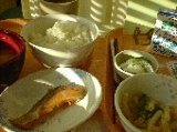 | 朝食 | ・ご飯 ・お味噌汁 ・焼き鮭 ・和え物 ・おつけ物 |