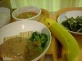 | 夕食 | ・ご飯 ・スープ ・焼き豆腐の肉味噌がけ ・野菜炒め ・バナナ |