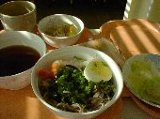 | 朝食 | ・ご飯 ・お味噌汁 ・ハム ・ほうれん草の和え物 ・おつけ物 ・野菜ジュース |
