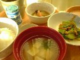 | 夕食 | ・ご飯 ・お味噌汁 ・お肉と野菜の煮物 ・野菜の煮物 ・野菜の和え物 |