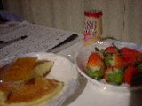 | おやつ | ・ホットケーキ1枚分 ・いちご ・乳飲料 |