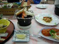 | 次はどこへ行きましょうと車に乗って富津館山道を走り出すと、瞬く間にしゅんが熟睡を始めました。早起きから始まって、船、お魚、ロープウェイ、いちごと興奮する出来事が続いた今日、お昼寝なしにはいられなかったのでしょう。そのままチェックインすることにして、ホテルに向かいました。 今日のホテルは「館山シーサイドホテル」です。ちょっぴり年季の入ったホテルの様で、階段しかないのには少々驚きましたが、「階段マニア」のしゅんは食堂に行ったりお風呂に行ったりするたびにワクワクと喜んでいました。 写真は食堂で頂いた夜ご飯です。お魚も並んでいたのですが、お昼のお刺身が余りに印象的だったため、夜ご飯の印象が薄く・・・。取り分けにしたしゅんは、いちごでお腹がいっぱいだったのか、余りご飯を食べませんでした。 |