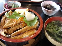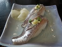 | お昼には少し早い時間でしたが、空いているうちに済ませてしまおうということで「はな房」という和食のお店に入りました。お座敷の席に座り、海をチラリと見ながら、メニューをめくりました。 私はこの旅行で一度は食べたいと思っていた名物のなめろうと、鰯のお寿司を、主人はあなご丼、しゅんには「お子様天丼」を注文しました。次々と運ばれてくるお料理を頂きましたが、意外と一番おいしくてお得感があったのが、期待もしていなかったお子様天丼の海老天ぷらでした。まだそれ程お腹が空いていない様子のしゅんから、私たちもお裾分けを(勝手に)もらって、お腹がいっぱいになりました。 |