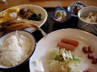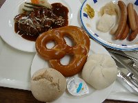 東京ドイツ村と海ほたる| 5月2日 目を覚ますと、夜まで降っていた雨が上がって、窓から海が見え始めました。折角のタワーからの眺めを堪能しようと、ベランダに出ました。 朝食ブッフェは、夕食と同じレストランです。旅行に出ると、いつも以上に朝ご飯が楽しみで、あれこれ盛りつけてはモリモリ食べてしまいます。食欲旺盛な私を見ただけでお腹がいっぱいになったのか、珍しく少食だったしゅんが部屋に帰ろうと言い出しました。 |