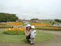 | お花摘みをしている私としゅんです。ポピーが本当にきれい!そして私が後ろを向いていたりうつむいていたりするところが、また良い感じだと主人が失礼なことを言いました。でも確かにその通りかも。 |