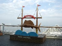 | ドイツ村を後にして、帰路につきました。帰り道のお楽しみは、初めて通る東京湾アクアラインです。海の上と下を走っちゃうなんて、すごい!とワクワクしながらアクアラインに乗りました。途中のサービスエリア、海ほたるまで、房総側からは水上の橋を渡っていきます。 海ほたるには観光バスもたくさん止まっていて、GWらしい混雑ぶりでした。おいしいと噂の、「海ほたる茶屋」の今川焼きとメロンパンなどを買い、パン屋さんでお茶をしました。私はもう一つ、「あさりのパン」なる物を買って主人に「またやってる」という目で見られていました。珍しい物はすぐに試してみたくなるのがいけないクセですが、これはなかなかおいしかったと思うのですが。 メロンパンは、クリーム入りとそうでない物、それからメロンではない他の果物の物と色々あります。観光バスが到着するたびに、どっさり売れていくので驚きました。 |