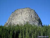 | 歩き始めて1時間ほどで「ミラーレイク」に着きました。その名の通り、周りの景色が映るほど透明な湖です。ハイキング中の人々が一休みしています。写真左は「ビッグビーハイブ」です。これは蜂の巣という意味の山です。ここを目的地として、ハイキングを続けます。 |