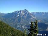 | JTBのシャトルバスで、今日はバンフに行くことにしました。まずはサルファー山のゴンドラに乗って頂上へ。4人乗りのゴンドラでは香港からいらっしゃったご夫婦と一緒になりました。頂上には台湾からの団体さんがいて、写真を撮りあいました。お天気がとてもよくて、360度に広がる景色が本当にきれいでした。写真右は近くまでやってきたビッグホーンシープです。 |