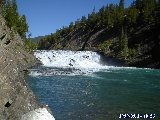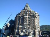 | リムロックリゾートホテルでシャトルバスを待ちました。このホテルは谷側の眺めがとてもよく、建物もとてもきれいでロビーではお茶のサービスまでありました。バスでバンフスプリングスへ。ホテル内はお城のようで迷ってしまいそうでした。しばらく探検した後、ボウ滝へ行こうと思いホテルの人に道を尋ねると、「ボウ滝への行き方」という日本語の案内を出されて思わず笑ってしまいました。 |