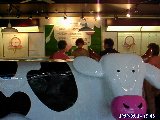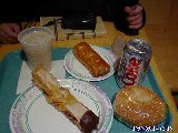 | 昼食はカスケードプラザの地下にあるお店でパイやベーグルを買いました。ここはいろいろなお店で買ったものを食べられるように机とイスが用意されていて、まるで日本のショッピングセンターの様でした。バンクーバーでもそうでしたが、この様な形式のお店の中には一見怪しげな日本食らしいものもあっておもしろかったです。焼きそばのようなものや焼き鳥のようなものなどを、カナダのビジネスマンらしい人々が食べていらっしゃるのを見ました。写真右はカウズというアイスクリーム屋さんの店内です。とてもおいしかったのですが、私たちの何倍もの量のアイスクリームチョコレート掛けをおいしそうに食べるカナダ人さん達に圧倒されておなかがいっぱいでした。 |