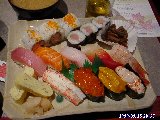 | 夕食は「KOJI」へ行きました。JTBのクーポンのコースでしたが、写真右のお寿司の他に鮭のイクラ乗せ、お刺身、牡蛎、メープルシロップのアイスクリームがつきました。ちなみにこのお寿司は一人前で、もちろん私には食べ切れませんでした。写真左はカナダの地ビール「カナディアン」と「コカニ」です。水がおいしいから飲みやすいそうです。普段お酒を飲まない私にも飲みやすく、すっかり酔ってしまいホテルに着いてすぐに熟睡しました。 |