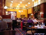 | バイキング形式の朝食です。右下はイカ巻きのようですが、ソーセージです。私はグレープフルーツのジュースを頂いたのですが、ジュースサーバーが壊れていて、コップを離してもどんどんジュースが出てきてパニックに陥ってしまいました!「エクスキューズミー」と叫ぶ私に、「コップを離せば止まるのよ。」と最初はちょっぴり冷たかった忙しそうなウエイトレスさんも、何杯もコップを早業のように替えながらジュースを注ぎ続ける私にやっと気づいて、大笑いしながら助けてくれました。 |