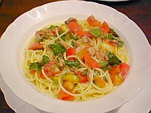 | 感想 | 地元のスパゲティやさんで夏季限定(9月いっぱいまで)のスパゲティを食べました。いろいろと工夫されたメニューが揃ったお店で、どれもおいしいのでよく行っています。 上のレタスのスパゲティは、レタスのしゃきしゃき感とオクラがちょうどよく合った、塩味のスパゲティでした。こんな取り合わせはなかなか思いつかないんじゃないかなぁという気持ちも込めて・・・☆☆ 下のトマトの冷製は、よくしまったパスタとトマトの酸味、少しだけ入ったケーパーの酸っぱさがよく合っていて、本当においしいスパゲティでした。夏季限定なんて言わないで・・・☆☆☆ |