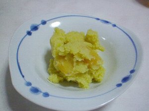 | 作り方 | ・さつまいもを輪切りにして、竹串が通るくらいまでゆでる ・ゆであがったさつまいもを裏ごしする ・お鍋にさつまいもを入れ、栗甘露煮のつゆを半分くらい入れる ・なめらかになったら、栗を入れてなじませる |