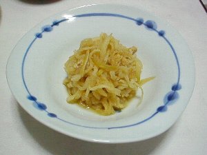 | 感想 | スーパーに行ったら、「新物」の切干大根が出ていたので早速買ってきました。さくさくしていて、やさしい甘さの切干大根は冬の大好きなお惣菜です。ごま油の風味も効いています。切干大根ではなく、生の大根を薄く切って作ると、みずみずしくやわらかい切干大根風煮物ができます。こちらも好きです・・・☆☆ |