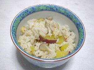 | 感想 | 鳴戸金時の甘さがほんのりご飯に移って、おいしい炊き込みご飯ができました。ごろごろと具が入るので、ご飯は少な目でちょうどいいと思います。おいもが大好きな女性にぴったり・・・☆☆ |