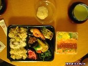 | 写真左は終点の国際会館まで乗った、地下鉄烏丸線です。緑とピンクの車体に鹿などが描かれていました。写真右は四条河原町の高島屋の地下で買ったお弁当です。明らかにお弁当が入ったデパートの袋を持っているのに、部屋まで来て下さったホテルの女性に「ご夕食のレストランなどはお決まりですか?」とホテル内のフランス料理店の案内をされた時には、笑いをこらえるのが大変でした。 |