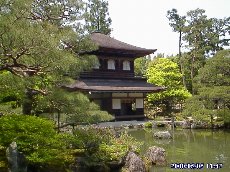 | 回遊式庭園をぐるりとまわり、また銀閣の近くに来ました。ここが写真をきれいにとれる場所の様で、多くの人がとっていました。ここも新緑がきれいでしたが、ぜひ秋などにも来てみたいなぁと思いました。 |