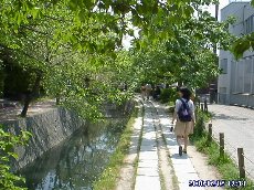 | 哲学の道を歩きました。銀閣寺から若王子神社まで続くゆるやかな道です。道の両側に桜の木が植えられていて、春の桜の季節はどんなにきれいなんだろう・・・と思いました。ここから南禅寺まで歩きました。 |