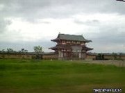 | 近鉄奈良に向かう途中、平城宮跡が見えました。「何と立派な平城京」で覚えた平城京の中心となった場所で、朱雀門などが復元されています。 |