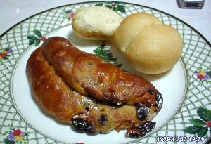 ドイツのクリスマス用のパンです。卵やバターがたっぷり入ったリッチなパンで、どちらかというとお菓子のような感じです。中にはレーズンやくるみやオレンジピールなどがたくさん入っています。薄くきりわけて頂きます。