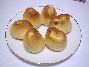 パン生地にくるみとクリームチーズを混ぜて焼いたパンです。焼きたては、クリームチーズがとろりととけて、ふわふわのパンとぴったりです。