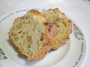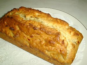 バナナとくるみが入っている、しっとりしたケーキブレッドです。材料もシンプルですが、作り方も本当に簡単でした。よく混ぜて型に入れたらオーブンで焼くだけです。