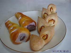 | チョコレートコルネ | 子どもから大人までおなじみのチョココルネです。このチョコレートが何でできているのか、このとき初めて知りました。ご存知の方も多いと思いますが、チョコレートとカスタードクリームを混ぜて作ってあります。ですから、パン屋さんのチョココルネは当日中にお食べくださいと書いてあるんですね。 |
