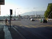 | 有名なチョコレートやさんのステットレーを通り過ぎ、モンブラン通りに出ました。写真左は郵便局です。右はモンブラン橋に入る交差点です。朝早く、まだ人かげもまばらでした。 |