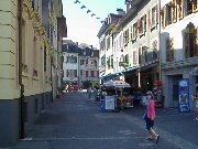 | 写真左はローマ博物館です。ニヨンはジュリアスシーザーがヨーロッパ遠征の際に築いた街ということで、ローマ時代の遺跡や出土品があるそうです。が、残念ながらお昼休み中で中に入ることはできませんでした。写真右は駅に近い街並みです。湖沿いとはまた違った趣がありました。 |