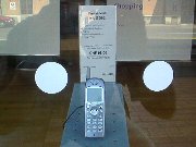 | 駅までゆっくり歩き、ジュネーブまで鉄道で帰ることにしました。何となく「世界の車窓から」みたいだねぇ・・・と言いながら、あの歌を口ずさんでいると、目の前を通り過ぎていくジュネーブ行きの電車が!ホームを間違えていたのでした。 写真右は駅前の電話やさんに展示してあった携帯電話です。パナソニックの携帯で、日本で出ているのと同じ様な形だったので、ついつい写真にとってしまいました。 |