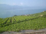 | 電車から見た風景です。昨日は湖側から見た風景を、電車側から見ることができました。葡萄畑がひろがっています。 |