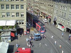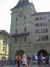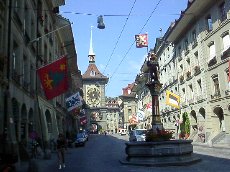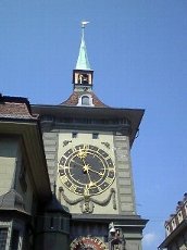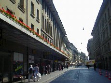| ベルンに到着しました。左上は駅構内にあった有料トイレです。他にも同じ様な有料トイレがありましたが、どこもとても清潔でした。入る時に1.5フランかかります。 ベルンの街並みは、本やテレビで見たとおりのとても趣のある風景でした。どこを見ても絵になる気がしました。 |