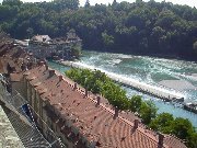 | シュピーツからは電車で、インターラーケンヴェスト駅に向かいました。今日からのホテルはアーレ河沿いのセントラルコンチネンタルです。古い造りのホテルですが、ベランダに小さなテーブルと椅子があり、こんなきれいな風景を見ることができました。アーレ河がとても涼しげでした。 | |