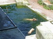 | 熊公園の熊です。見物している人がたくさんいました。暑かったので、水浴びをしている熊がうらやましいくらいでした。 | |