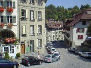 | 8時29分発、ベルン行きのICでベルンへ行くことにしました。月曜日ということもあって、通勤する人々で駅にもたくさんの人がいましたが、東京の通勤ラッシュの様な風景ではありませんでした。ホームで電車を待っていると、どこかで見たことのある様な女性が旦那さまらしき人と電車を待っています。お互い、何となく知っているような・・・という顔でおじぎをしていると、その女性が私の旧姓で話しかけてきました。 私たち夫婦は、大学の合同サークルで知り合ったのですが、その女性は同じサークルに所属していた私の大学の先輩だったのです!日本でもご無沙汰していたのに、ジュネーブのホームで会うなんて、本当にびっくりしてしまいました。一緒にいた方はやっぱり旦那さまで、よく聞くと主人の大学の先輩でした。インターラーケンまで行かれるということで、ベルンまでご一緒することができました。 |