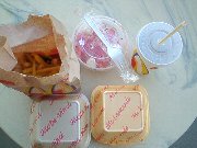 | 今日の夜ご飯はスイスのマクドナルドに初挑戦です。「レオナルド」と「ダヴィンチ」というハンバーガーと「モナ・リザ」というトマトサラダを買いました。お味は・・・やっぱりよく慣れたハンバーガーを買いましょう。トマトサラダはモツァレラチーズが入っていてとてもおいしかったです。 |