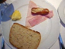 | 楽しかった旅行も終わりです。チューリッヒ14時発のJL454便で成田に帰りました。スイスエアとのシェア便ということで、初めてスイスエアで長時間の空の旅をすることになりました。右は機内食です。リゾットはチーズの味が結構こくて、やっぱりスイスだなぁと思いました。生野菜のサラダは機内食でこんなにたくさんの野菜を食べたのは初めてで、とてもおいしかったです。成田には定刻より少し早い8時半ごろに無事到着しました。いろいろな乗り物に乗って、ハイキングもいっぱいして、楽しい旅行でした。 |