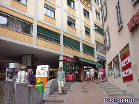 | 駅前の階段を下りて少し行くと、カテドラル通りに出ます。石畳の両側に雑貨屋さんやレストランが並ぶお洒落な通りです。 |