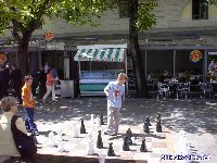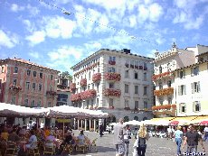 湖の近く、マンツォーニ広場では、大きなチェスを楽しんでいる子どもや大人がいました。木陰でそれを眺めるのも楽しいものです。 明るい太陽、花がたくさん飾られた建物、オープンテラスで食べるイタリアン、どれを取っても陽気なイタリアという感じでした。 |