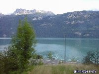 | ブリューニック線は、スイスでも車窓からの風景が美しいところと言われているそうです。進行方向右側の方が景色がよく見えます。 ルツェルンを出たときは、ものすごい雷雨でした。あまりに強い雨でちょっと先も見えない程でした。でもしばらくすると、雲が切れてこんなきれいな風景が見えてきました。湖や山々を、ずっと眺めていました。 |