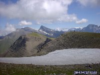 バッハアルプゼーから先、どこへ行くか迷いました。いろいろなコースを考えて、ファウルホルンへ登ってみようかということにしました。 1時間半ほどのコースですが、標高2681メートルの頂上まではかなりの坂道が続いているのが見えます。ちょっとくじけそうになりながらも、あの曲がり道まで、次はあの小屋までと目標を決めて頑張りました。上から見る湖はまた違った風景でそれもきれいでした。右上の写真は、わかりにくいですが氷の上を歩いている牛の集団です。滑らないかしらと心配になりました。 |
