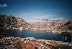 | グリムゼル峠の湖で途中下車しました。空の色がとてもきれいです。 |