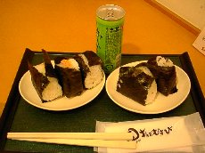 | お昼ご飯は新宿駅の「おだむすび」でとりました。ここはいろいろな味のおにぎりが売られていて、手軽においしく食べられるということで最近人気があるお店です。 伊東駅に着くと、駅前に多くのホテルや旅館からのお迎えの方が並んでいました。今夜泊まるところが決まっていない人も多いのか、旅館協会の方が改札口から出てくる人に「今日泊まるところは決まってる?」と声をかけていました。 写真右はホテルのお部屋からの眺めです。島もきれいに見えました。お部屋は畳の10畳のお部屋と、ツインのベットルームがついていました。二人で泊まるには本当に広くて、びっくりしてしまいました。自宅よりずっと広く、住みたくなってしまいました! |