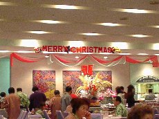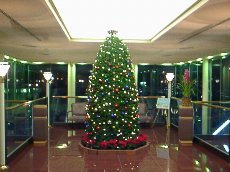 | 夕食と朝食はブッフェでした。いろいろな種類があって、お腹がいっぱいでした。珍しいところでは南国の果物がたくさんあって、マンゴスチンやパッションフルーツを初めて食べました。 ロビーには大きなツリーがありました。このホテルは温泉も自慢のひとつなので、ホテル館内はすべて浴衣+スリッパで過ごすことができます。いわゆるホテルの施設の中に浴衣で出ていくことに、最初はちょっと抵抗があったのですが、いざ浴衣の人ばかりの中に入っていくと、とっても楽ちんでのんびりすることができました。ホテルのロビー横にあるバーでは、夜にシンセサイザーの生演奏が行われていて、ソファーなどでちょっとお酒をいただきながらくつろぐことができました。東京ではおしゃれなお酒のお店には行ったことがない私ですが、浴衣姿で音楽を聞きながらお酒を飲む・・・というこのバーはとっても楽しかったです。 |