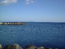 | 翌日は駅まで送迎バスで送っていただき、駅から5分くらい歩いて海に行きました。またいいお天気で、真っ青な海を見ることができました。 | |