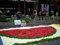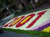 | 2001年4月29日、銀座のみゆき通りで今年15回目になる「フラワーカーペット2001」というイベントがありました。 これは富山県などの協力で行われているイベントで、球根を育てるために摘み取られた20万本分の花びらで様々な模様が描かれていました。 |