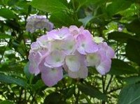 | ピンク、青、水色、紫・・・と紫陽花の色は本当に様々です。私はずっとピンクの紫陽花が好きでしたが、昨日は右の写真の淡い水色のものが、とてもかわいらしく見えました。右上の色が付き始めたピンクの紫陽花もきれいでした。 | |