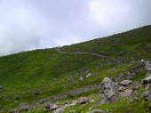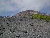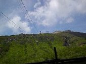 | まず、那須岳ロープウェイに行きました。山麓駅から1715メートルの那須岳山頂まで、5分で到着します。そこから、30分程歩くと1915メートルの茶臼岳山頂です。下の写真が山頂までの道ですが、今回は右下の写真にある、牛ヶ首経由のコースを歩くことにしました。 | |