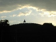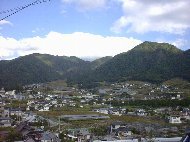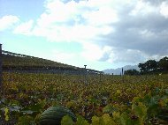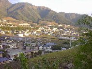 | ぶどうの丘からの帰り道です。町中一面にぶどう畑が広がっています。右側の写真はぶどうの丘の頂上にある「希望の鐘」です。この場所では結婚式も行われるそうです。そんな素敵な場所なのに、鐘を見るなり和田アキ子さんの歌を歌い出す主人。とほほ。 | |